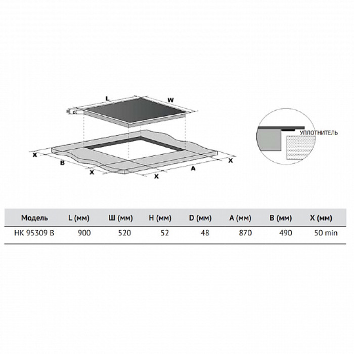 Размер встраивания: 870×490 мм