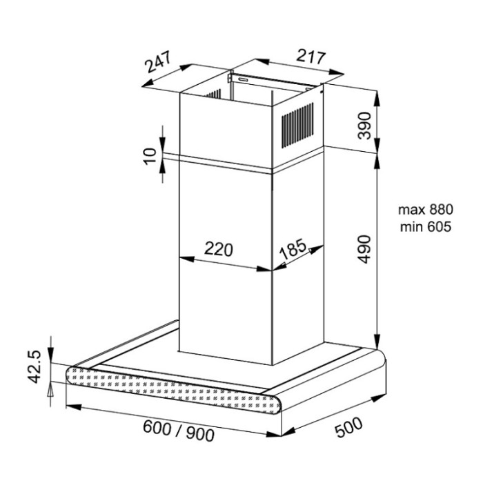 | Размер (ВхШхГ), мм | 647.5-922.50х900х500 |