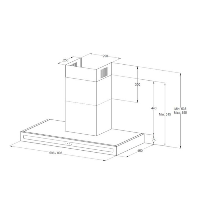Производительность 850 м³/ч обеспечивает уверенную очистку воздуха во время повседневной готовки. Три режима работы позволяют выбрать оптимальный — от лёгкого проветривания до усиленной тяги, когда на плите сразу несколько блюд. Сенсорное управление делает процесс интуитивным и привычно удобным, без лишних элементов.