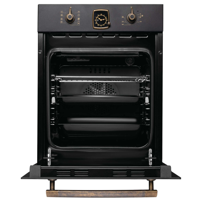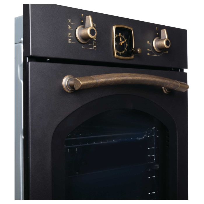 Электрический духовой шкаф KÖRTING OKB 4941 CRN — это выразительное сочетание классических форм и современного комфорта. Матовый чёрный цвет в паре с бронзовой фурнитурой придаёт модели благородный характер и подчёркивает статус кухни. Духовой шкаф создан для тех, кто уважает традиции, но ценит удобство и надёжность в повседневной готовке. Компактная ширина 45 см делает его идеальным решением для аккуратных кухонных пространств без компромиссов по функционалу.