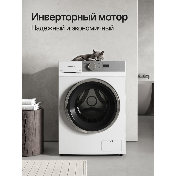 ✅ Тихая работа – всего 56 дБ при стирке, благодаря инверторному мотору.