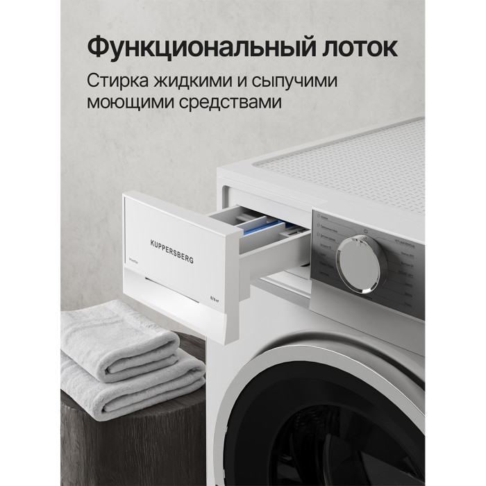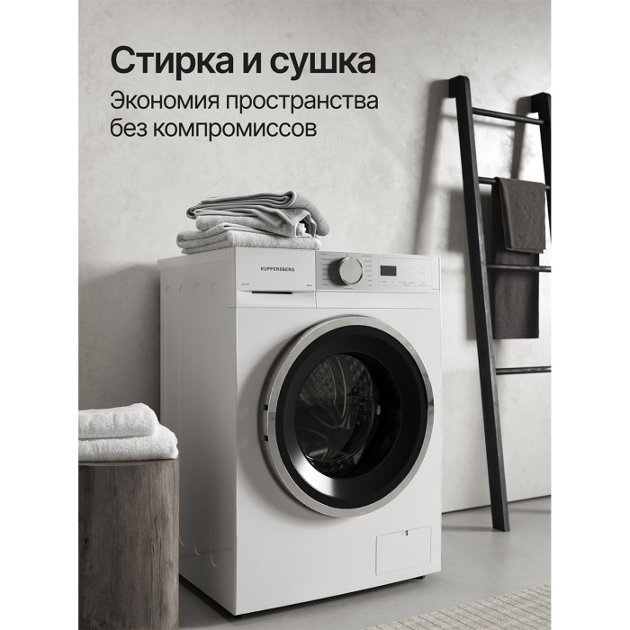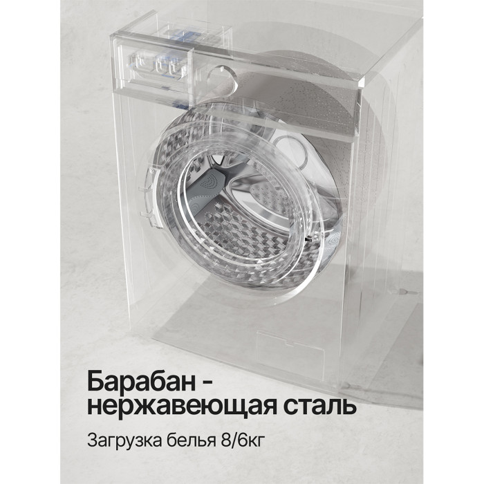 ✅ Большая загрузка – до 8 кг при стирке и 6 кг при сушке. Идеально для семейного использования.