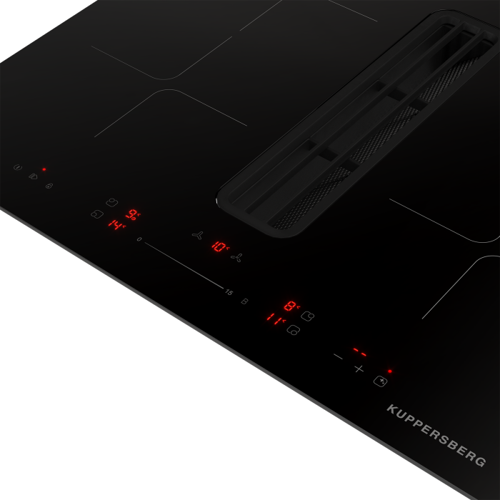 Индукционная варочная панель IHI 690 с вытяжкой — это современное решение «2 в 1», объединяющее мощную варочную поверхность и встроенную систему вытяжки. Формат шириной 60 см подходит для стандартной встройки и позволяет отказаться от классической настенной вытяжки, сохраняя чистые линии кухни. Панель выполнена из стеклокерамики ILVA в чёрном цвете. Красный дисплей и слайдерное управление подчёркивают стиль коллекции High-Tech. Индукционный нагрев с технологией Inverter обеспечивает быстрый отклик и стабильную работу без перепадов мощности. Встроенная вытяжка эффективно удаляет пар и запахи непосредственно в зоне приготовления, работая в режиме отвода воздуха или рециркуляции.